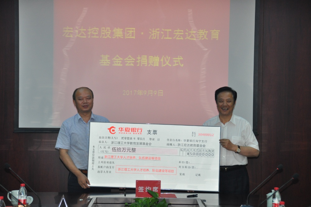 向浙江理工大學捐贈教育發(fā)展基金50萬