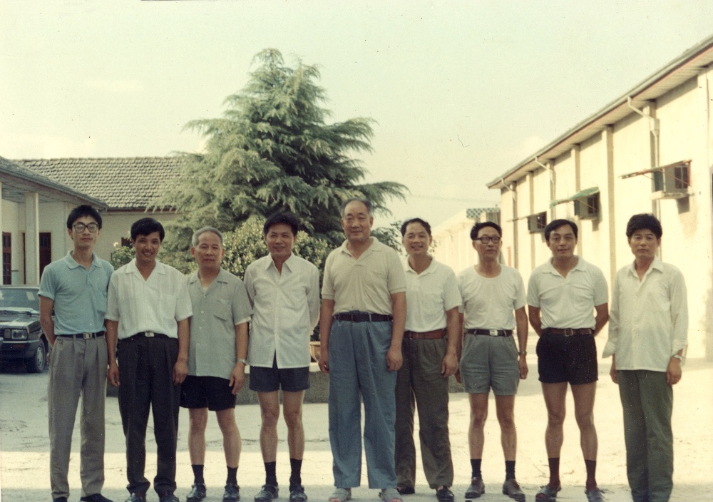 The former deputy director of the Jiaxing Municipal People's Congress and the then secretary of the Haining Municipal Party Committee, Tian Yongchang (middle) and other leaders took the group photo with the director of Shen Guofan.