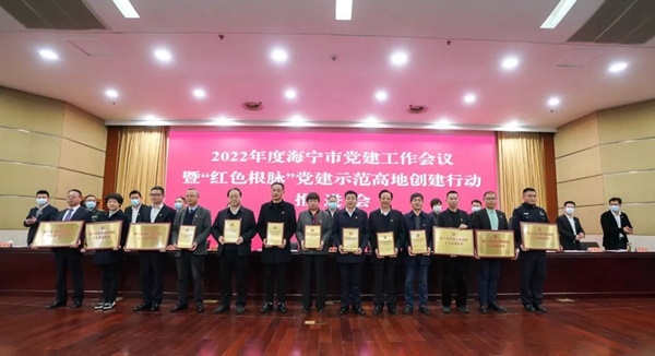 2022年3月7日上午,2022年度全市黨建工作會議暨“紅色根脈”黨建示范高地創(chuàng)建行動推進會召開。會議總結(jié)2021年黨建工作,部署2022年全市組織(機關(guān)黨建)、宣傳、統(tǒng)戰(zhàn)條線黨建相關(guān)工作,全面啟動“紅色根脈強基工程”各領域任務。會議還通報表揚了黨建高地創(chuàng)建“十大強基先鋒”“十大強基堡壘”和“十大強基品牌項目”。宏達控股集團黨委書記、宏達高科董事長沈國甫獲評黨建高地創(chuàng)建“十大強基先鋒”。