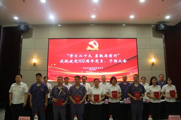 會議在莊嚴的國歌聲中拉開序幕。全體黨員在沈國甫書記的領(lǐng)誓下,舉起右拳,面向黨旗莊嚴宣誓,重溫入黨誓詞;顧偉鋒同志宣讀了集團黨委《關(guān)于開展“學習二十大,勇毅再前行”慶祝建黨102周年系列活動的通知》;許建舟同志宣讀了集團黨委《關(guān)于表彰優(yōu)秀共產(chǎn)黨員的決定》,表彰了過去一年涌現(xiàn)出的10名優(yōu)秀共產(chǎn)黨員;綜合支部李強代表獲獎優(yōu)秀黨員發(fā)言。