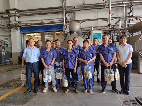 7月14日上午,宏達(dá)高科控股股份有限公司總經(jīng)理許建舟、副總孫云浩、工會(huì)主席胡朗秋、財(cái)務(wù)總監(jiān)王鳳娟、生管部長(zhǎng)陸維敏等一行來(lái)到公司高溫生產(chǎn)車(chē)間,慰問(wèn)在酷暑中堅(jiān)持工作的生產(chǎn)一線員工。