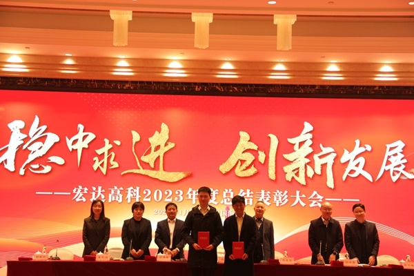 2024年1月31日,宏達(dá)高科控股股份有限公司2023年度總結(jié)表彰大會在錢江君廷酒店舉行,集團(tuán)公司董事長兼“宏達(dá)高科”董事長沈國甫、集團(tuán)公司總經(jīng)理沈珺,“宏達(dá)高科”總經(jīng)理許建舟、副總經(jīng)理顧偉鋒等領(lǐng)導(dǎo),公司管委會成員、全體職工及兄弟單位員工共410余人參加會議。