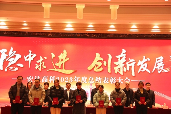 此次會議以“穩(wěn)中求進(jìn) 創(chuàng)新發(fā)展”為主題。會議表彰了2023年度優(yōu)秀新人、優(yōu)秀基層員工、優(yōu)秀基層管理者、優(yōu)秀中層管理者,以及2023年度生產(chǎn)實(shí)操技能考核優(yōu)秀人員;獲表彰的員工代表分別發(fā)表了獲獎感言;營銷中心經(jīng)理陳永達(dá)就2024年銷售工作作表態(tài)發(fā)言;副總經(jīng)理金小紅就分管的技術(shù)、工藝工作作表態(tài)發(fā)言;副總經(jīng)理孫云浩就分管的生產(chǎn)工作作表態(tài)發(fā)言。