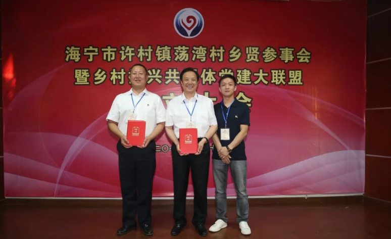2019年8月16日下午,海寧市許村鎮(zhèn)蕩灣村鄉(xiāng)賢參事會(huì)暨鄉(xiāng)村振興共同體黨建大聯(lián)盟成立大會(huì)在該村舉行,我集團(tuán)公司董事長(zhǎng)沈國(guó)甫在大會(huì)上被聘為許村鎮(zhèn)蕩灣村鄉(xiāng)賢參事會(huì)名譽(yù)會(huì)長(zhǎng)。