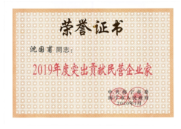 2020年3月8日,海寧市“工業(yè)強市 向高質量前進”暨全市三級干部大會隆重召開,會議表彰了2019年度為全市經濟社會發(fā)展作出突出貢獻的企業(yè)和個人。宏達集團董事長沈國甫榮獲海寧市“突出貢獻民營企業(yè)家”稱號。