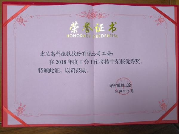 2019年4月10日下午,許村鎮(zhèn)總工會召開許村鎮(zhèn)總工會第十一屆十次全委(擴(kuò)大)會議。會上總結(jié)了許村鎮(zhèn)工會2018年度工作總結(jié),對2018年度工作先進(jìn)單位進(jìn)行表彰,宏達(dá)高科工會榮獲2018年度工會工作先進(jìn)集體。