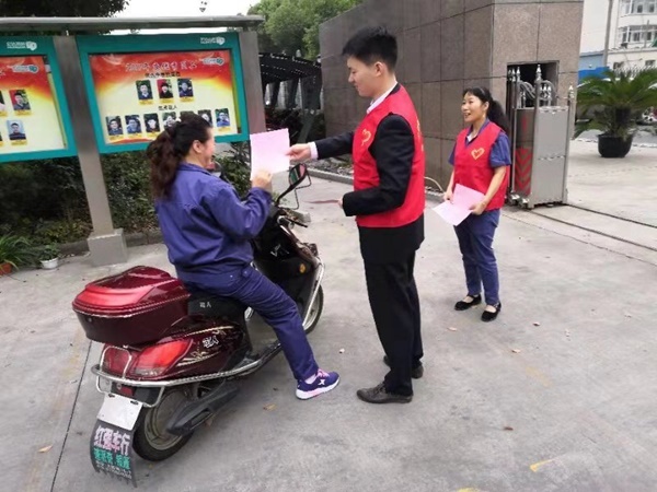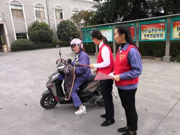 每天臨近下班,宏達(dá)高科黨員志愿者們已提前來到公司生產(chǎn)區(qū)門口,他們身穿志愿者標(biāo)志的紅馬甲,手拿交通文明宣傳傳單,分發(fā)給進(jìn)出廠區(qū)的員工,并為員工的電瓶車貼上“平安許村”的反光膜,提醒員工們開車注意安全,不要在行駛過程中猛轉(zhuǎn)彎,開電瓶車必須佩戴頭盔等方面的安全知識。
