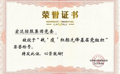 近日,中共宏達控股集團黨委被中共嘉興市委組織部評為“戰(zhàn)‘疫’紅船先鋒基層..